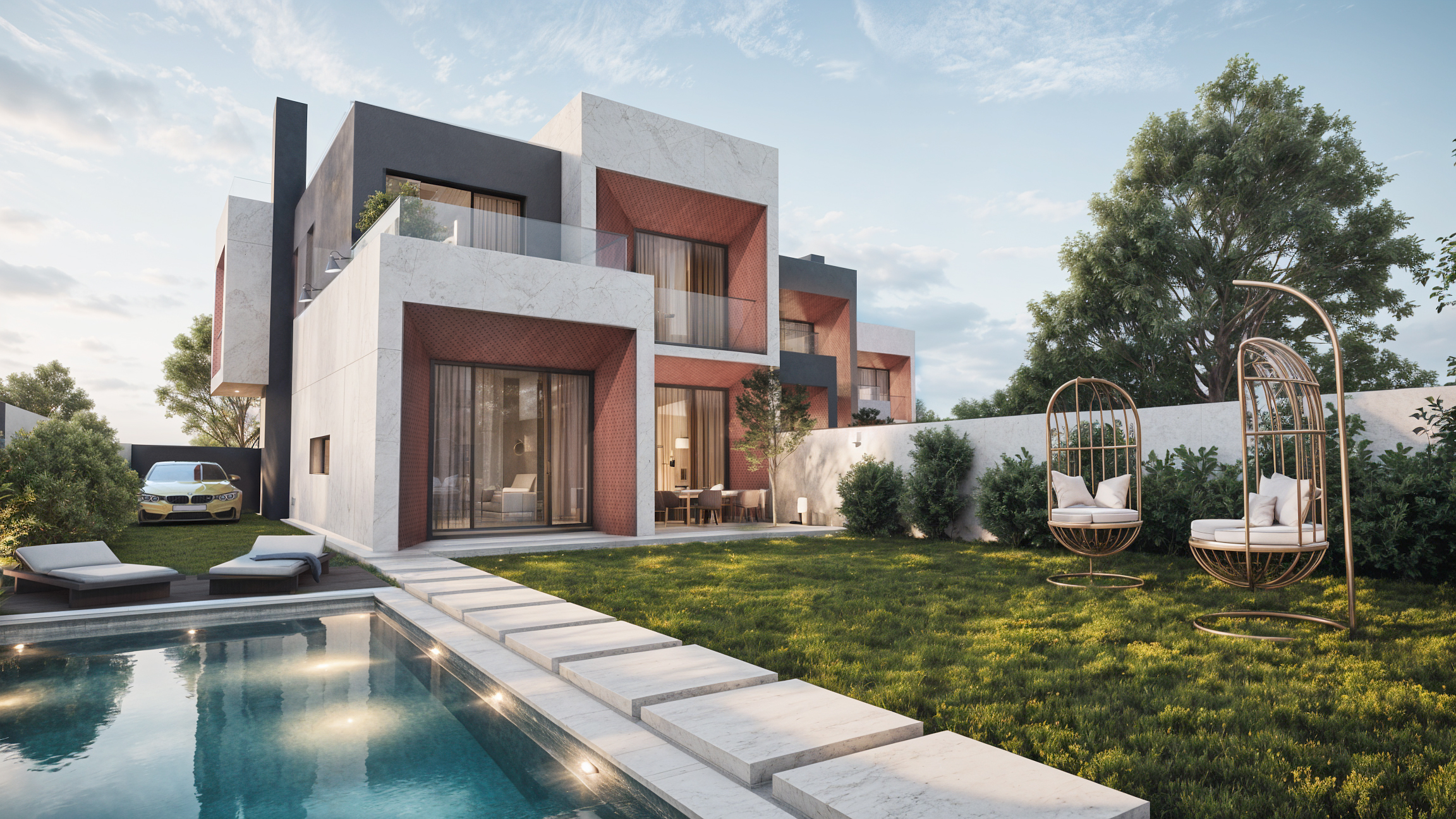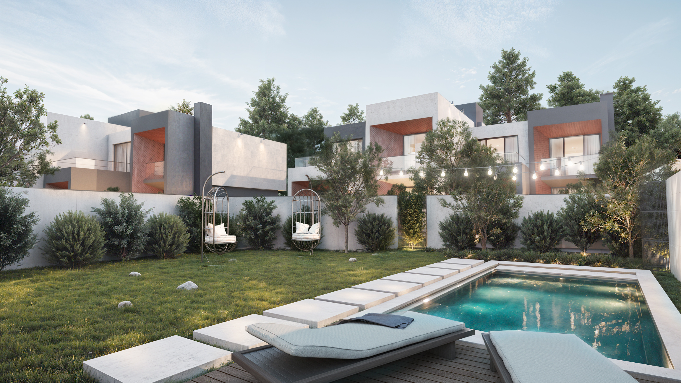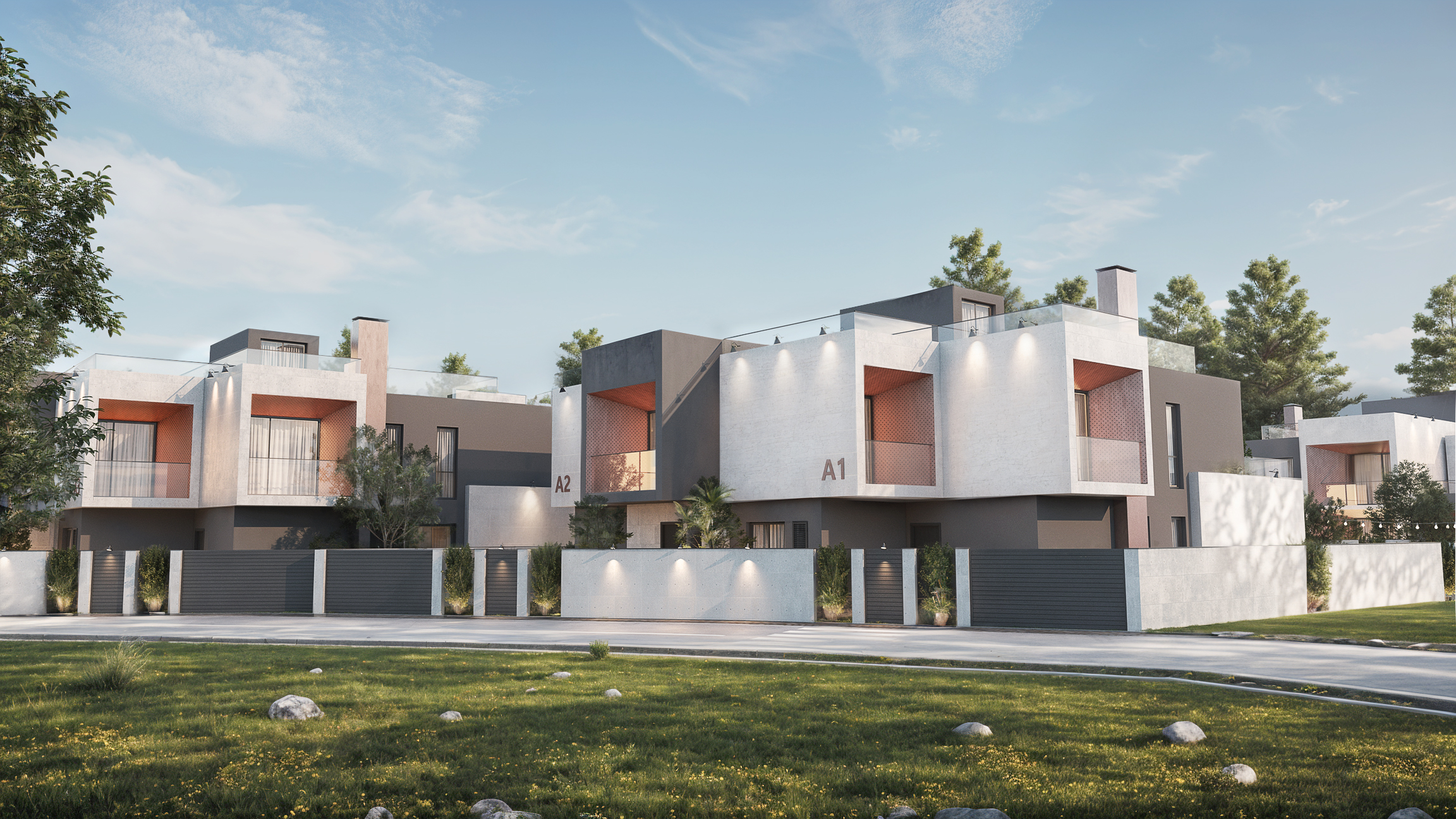 ყველა სახლი ჩაბარებულია პრემიუმ ხარისხის მწვანე კარკასით, ინდივიდუალური ეზოთი და ფუნქციური ჭიშკრით. სურვილისამებრ, დამონტაჟდა საცურაო აუზი.
